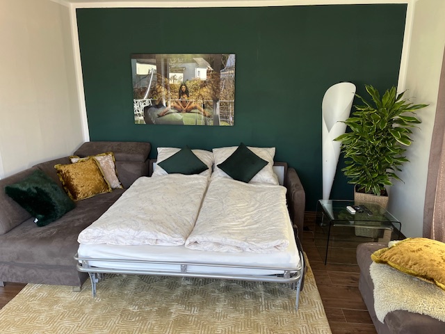 Sie müssen auf keinerlei modernen Wohnkomfort verzichten. Die Wohnung verfügt über ein eigenes Bad mit ebenerdiger Wohlfühldusche und WC. Ein Flachbildschirmfernseher (65 Zoll!) mit